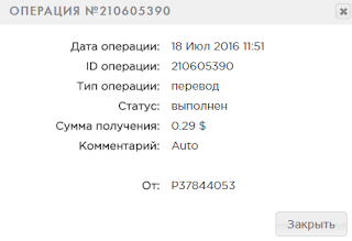 07.19.16 01:35 Account Receive +0.61 Received Payment 0.61 USD from account U11758977 to account U1141****. Batch: 140172449. Memo: API Payment. Auto.