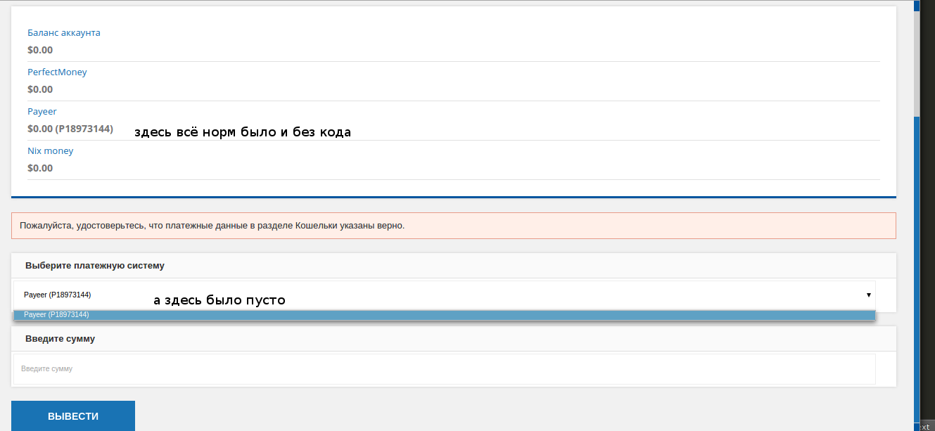 А сегодня при выводе пришлось код спрашивать у поддержки, так как там просто не открывался пункт, который на скрине выделен у меня. Я даже испугалась, что не ответят и кинут.