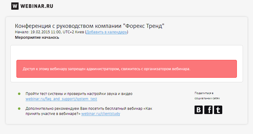 Доступ к этому вебинару запрещен администратором, свяжитесь с организатором вебинара.