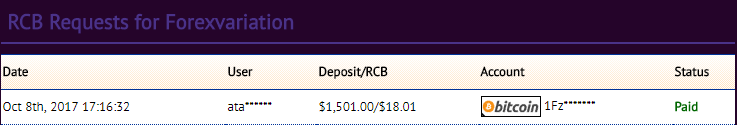 Forex Variation Limited +2.5 Received Payment 2.5 USD from account U12645879. Memo: API Payment. Withdrawal. Payment ID: 424