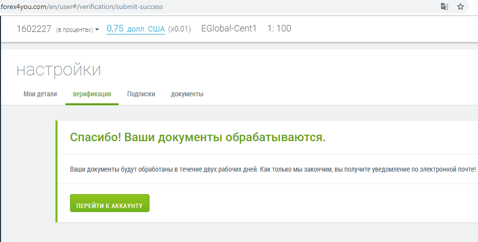 На текущий момент, загруженных документов в системе нет. Просим Вас еще раз убедиться, что документы загружены именно в обе ячейки, где написано "Загрузить". Отдел верификаций сможет увидеть загруженные документы только после того как Вы нажмете "Подтвердить и продолжить".