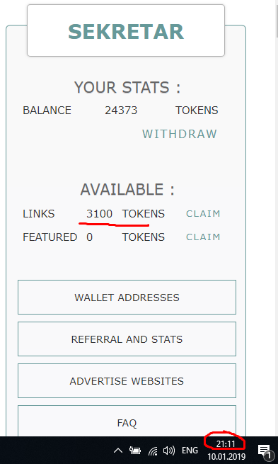Оставшиеся 3100 коинов - это ссылки по 100, которые я не стал проходить, одна 200 и одна 300, которые по непонятной причине после прохождения капчи и таймера перебрасывают на левый сайт и коины на балланс не засчитываются (а если учесть, что я на них попадал пару раз то от общего потраченого времени можно смело отнимать 2-3 минуты!
