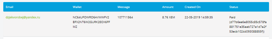 Моментальная выплата 8.31 XEM (0.44$) из крана FreeNem на Binance: