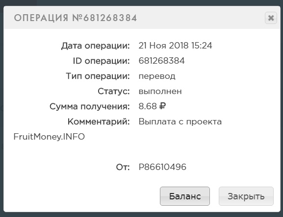 Комментарий: Выплата с проекта FruitMoney.INFO