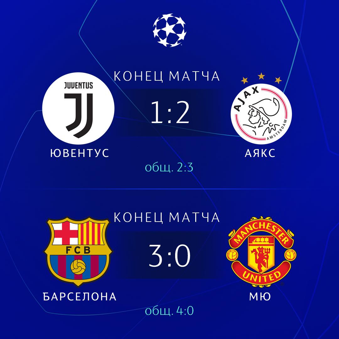Не выиграть Роналду в четвертый раз подряд ЛЧ, Аякс грохнул Юве, Барса - МЮ был скучный матч, как всегда Месси решил исход за 20 мин, забив два гола, вероятнее Барса будет играть в финале, хочется видеть Аякс или МС в финале, но не Тотенхем.