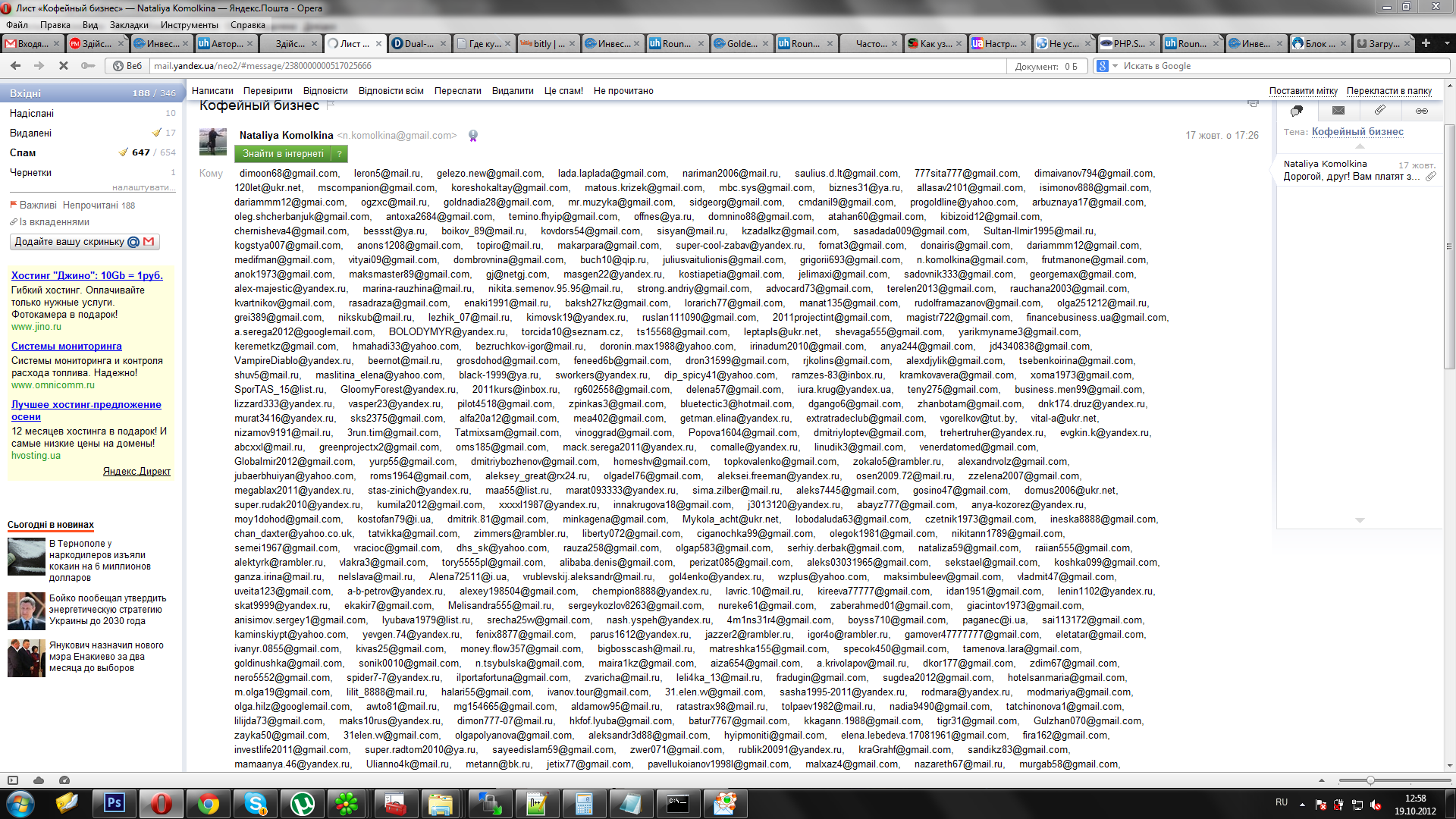 Если Вам приходит спам, просто копировать адреса получателей, пример: