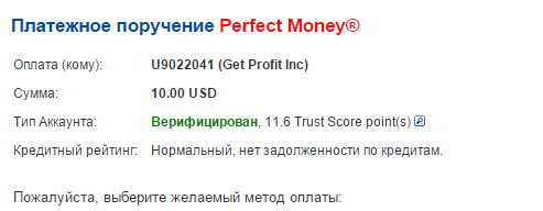 Получена выплата инстантом на "Perfect Money":