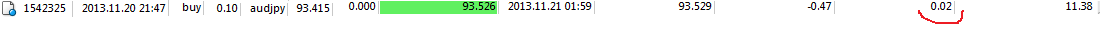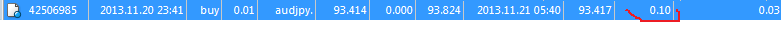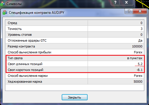 Т.е. за перенос длинной позиции объемом 0.1 по паре AUDJPY через ночь должно начисляться 52 цента ($0.52). А если же позиция переносится в ночь со среды на четверг, то уже чуть больше $1.5
