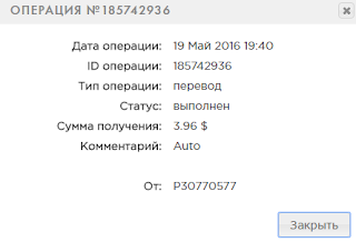 Received Payment 0.3 USD from account U10798368. Memo: API Payment. Auto. Batch 134074326 19:16 20.05.16