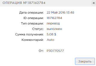 05.22.16 21:08 Account Receive +5.00 Received Payment 5.00 USD from account U10798368 to account U4731311. Batch: 134281230. Memo: API Payment. Auto.Global Market
