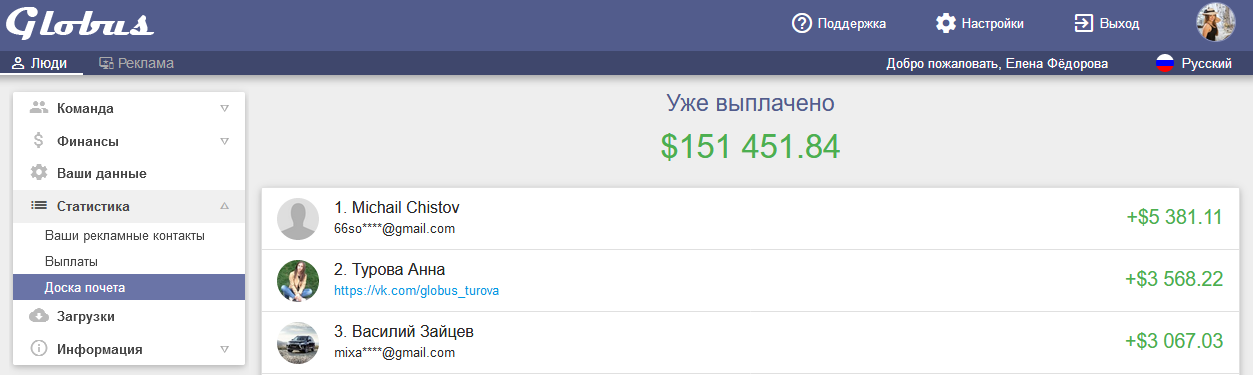 Проект Globus платит: