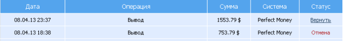 не в этом ли разгадка? 8 числа все суетились и пробовали ставить на вывод. Потом отменяли вывод и заказывали снова. Я в том числе. Проверьте, пожалуйста, кто не получил деньги по завке от 8 числа, делали ли отмену заявки? На предыдущих выложенных скринах у всех есть отмены.
