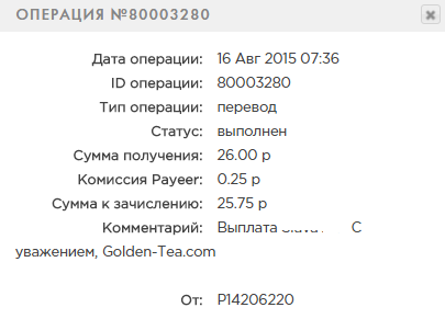 Комментарий: Выплата Riaf.biz. С уважением, Golden-Tea.com