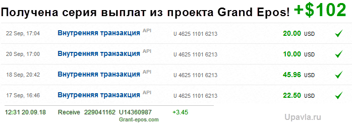 The amount of 1.6 USD has been deposited to your account. Accounts: U14360987->U1329860. Memo: API Payment. Withdraw to investspot. From Grant-epos. Date 2018-09-22 12:57:19.. Date: 12:47 22.09.18. Batch: 229262779.
