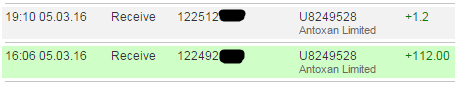 05.03.16 20:39 Receive Received Payment 0.3 USD from account U8249528