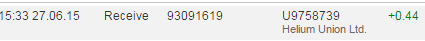 13:33 27.06.15 93084198 Received Payment 0.44 USD from account U9758739. Memo: API Payment. Withdraw to Slv1983 from Helium Union Ltd.