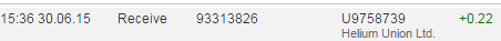 The amount of 10.22 USD has been deposited to your Perfect Money account. Accounts: U9758739->U8824... Memo: API Payment. Withdraw from Helium Union Ltd.. Date: 11:03 30.06.15. Batch: 93292791.
