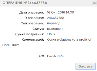 The amount of 2.65 USD has been deposited to your Perfect Money account. Accounts: U12382486->U352**. Memo: API Payment. Congratulations to a profit of Hotel Travel.. Date: 14:58 16.10.16. Batch: 150295865.