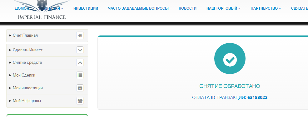 Imperial Finance Group +9.46 Received Payment 9.46 USD from account U4834277. Memo: API Payment. Withdraw to hyipinv from impfingroup.com.