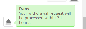 Ваш запрос на вывод средств будет обработан в течение 24 часов.
