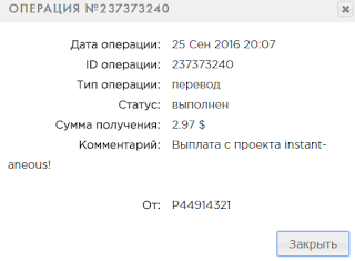 Memo: API Payment. Выплата с проекта instant-aneous!.. Date: 17:34 25.09.16. Batch: 147751070.
