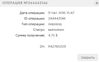 10.11.16 22:01 Account Receive +4.5 Received Payment 4.5 USD from account U12015203 to account U17755**. Batch: 149843333. Memo: Выплата с проекта InvestBS