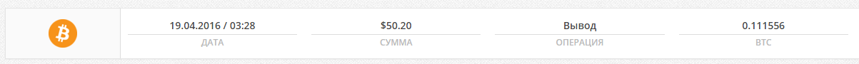 Вы получили 0.007867 BTC ($ 3.35) Стоимость на момент осуществления транзакции $ 3.35 Hash 8aeea734e7f6747af0... Время передачи 2016-04-18 18:45:03