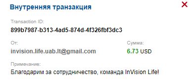 Выплата из InVision за месяц, получил статус лояльного клиента и +2% на все тарифные планы.
