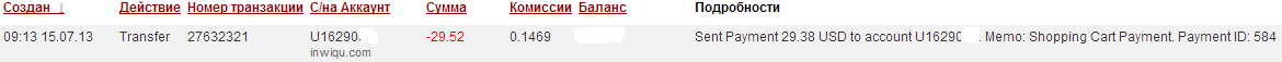 inwiqu.com -80.4 0 Sent Payment 80.00 USD to account U1629089. Memo: Shopping Cart Payment. Payment ID: 1188