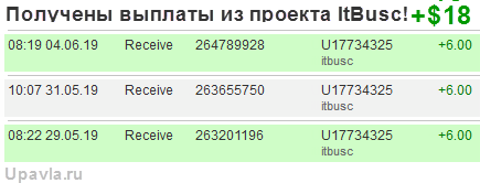 The amount of 10 USD has been deposited to your account. Accounts: U17734325->U6977456. Memo: API Payment. Withdraw.. Date: 10:00 31.05.19. Batch: 263654791.