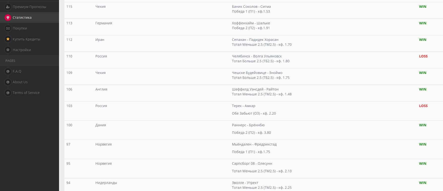 Каждый новый пользователь получает 250 кредитов бесплатно, что дает вам 50% скидку на покупку 1 прогноза!