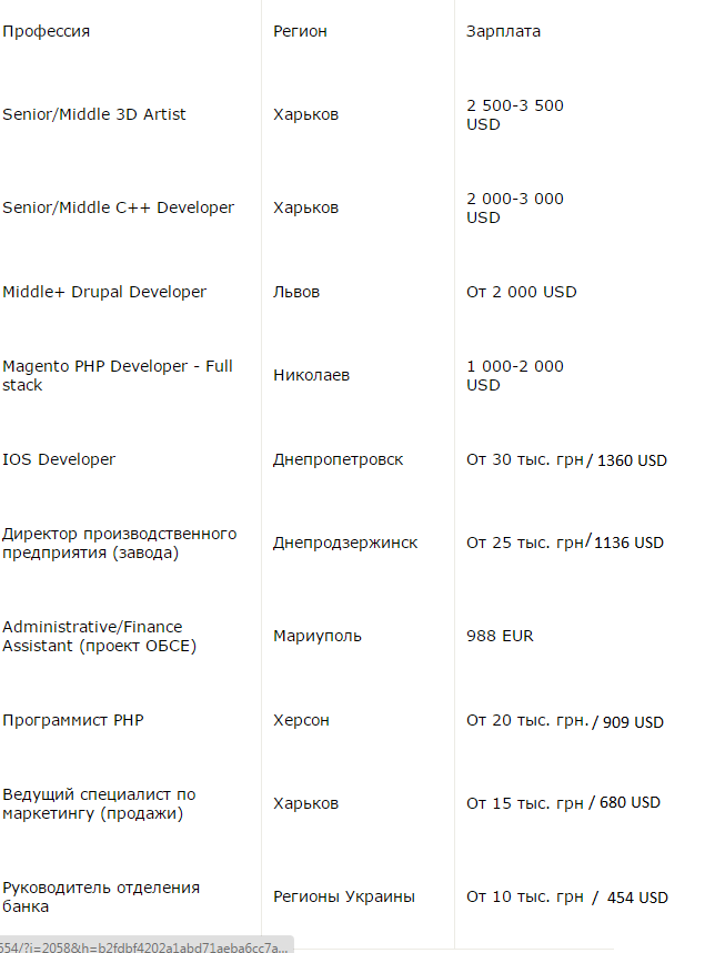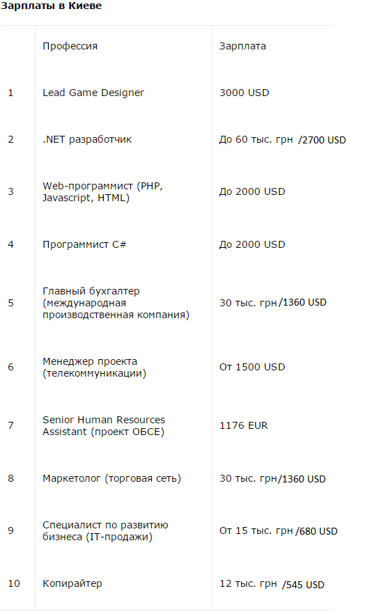 Уровень предлагаемых зарплат в июле практически не менялся по сравнению с предыдущими месяцами. С указанием зарплат на Международном кадровом портале HeadHunter Украина опубликовано не больше 30% всех вакансий. А лидерами высоких зарплатных предложений по-прежнему остаются аутсорсинговые IT-компании, предлагающие своим сотрудникам высокие зарплаты с привязкой к доллару, а также крупные международные компании и гуманитарные проекты.