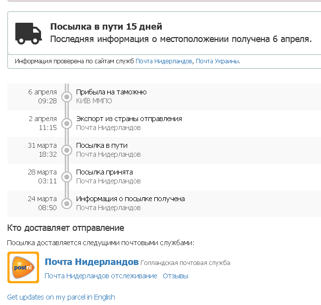 Ура! Получил письмо от Лилии с трек кодом. Написала что посылочку уже отправили