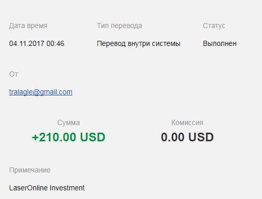 The amount of 3.6 USD has been deposited to your account. Accounts: U14899317->U*. Memo: API Payment.. Date: 12:16 03.11.17. Batch: 193764187.