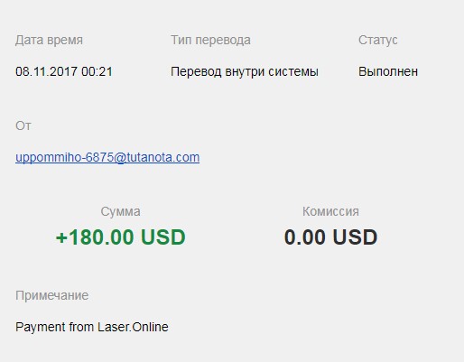 08.11.2017 04:50 Перевод внутри системы Выполнен