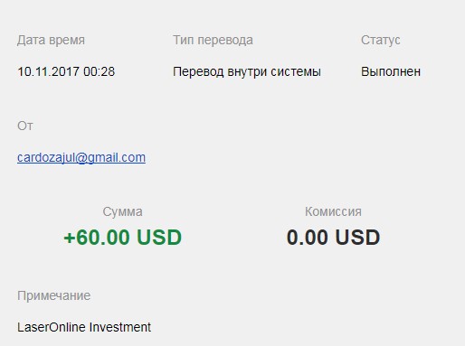 09 Nov, 22:59 Transaction ID: a8c8eb33-bf40-41d1-9aaa-13a23be0150c 36.00 USD LaserOnline Investment