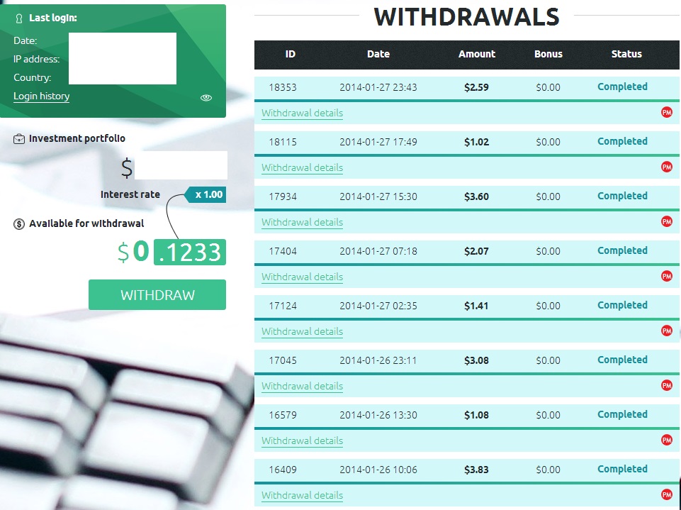 The amount of 3.84 USD has been deposited to your Perfect Money account.