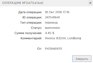 11:47 18.10.16 Receive 150491856 Received Payment 4.5 USD from account U12093854. Memo: API Payment. Invoice 1952, Alex--K.