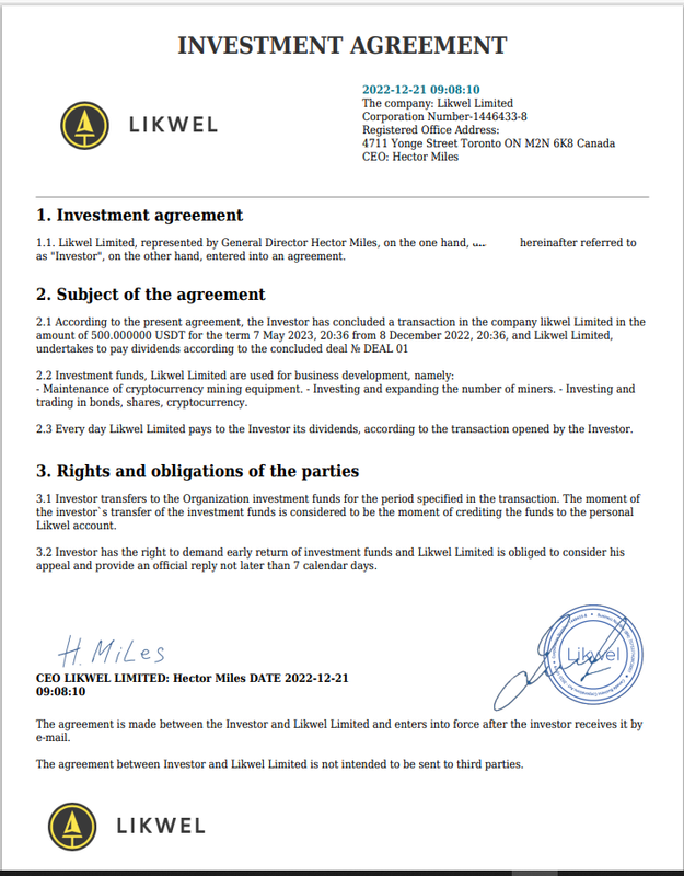 LIKWEL вывод средств | подтверждение платежеспособности компании