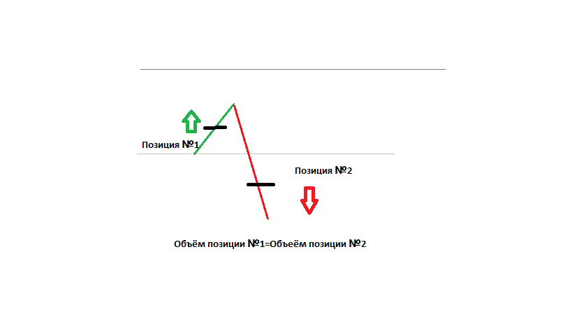 Может я не очень точно нарисовал точки открытия позиций, но они должны быть одинаковыми и при одинаковых объемах должны показать ноль убытка на вашем депозите.