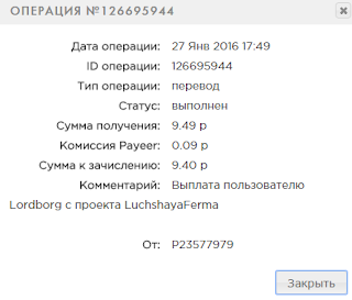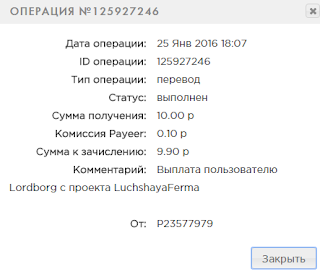 Комментарий: Выплата пользователю sarita с проекта LuchshayaFerma