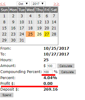 Вся сумма на депозите минус первоначальный депозит? Тогда получается 169,16% за 25 часов?
