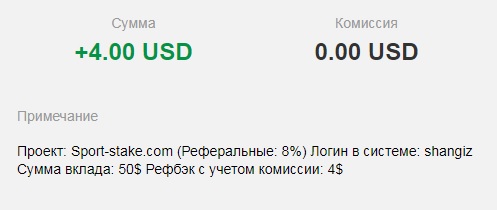 Comment: Проект: Universal.gifts (Реферальные: 3%) Логин в системе: lars777 Сумма вклада: 50$ Рефбэк с учетом комиссии: 1.49$