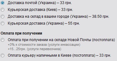 Расчёт стоимости производится несколькими способами (почтой, курьером, на склад в Вашем городе) при оформлении заказа. Тарифы на доставку футболки по Украине: