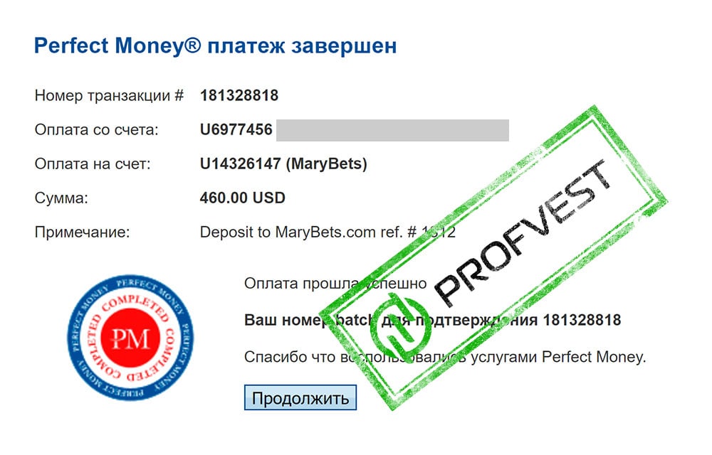 Deposit to MaryBets.com