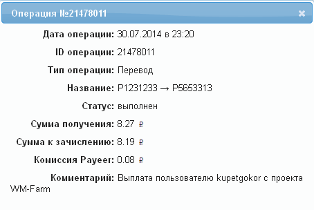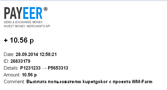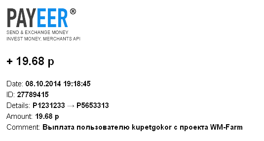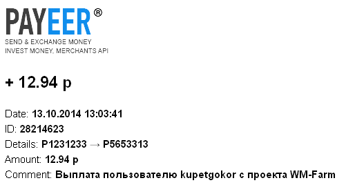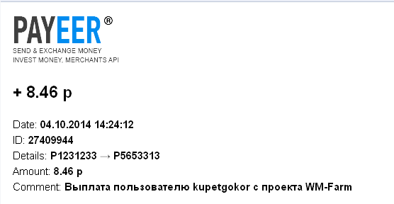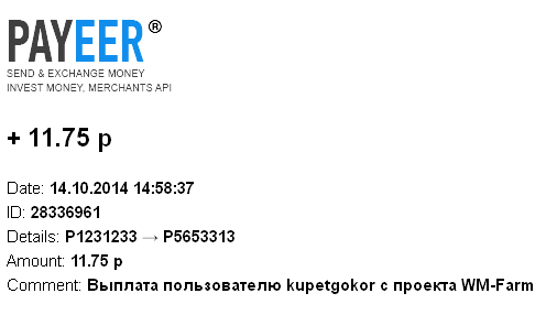 Comment: Выплата пользователю zhecka с проекта WM-Farm