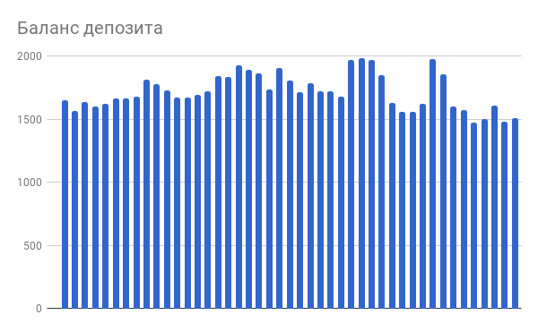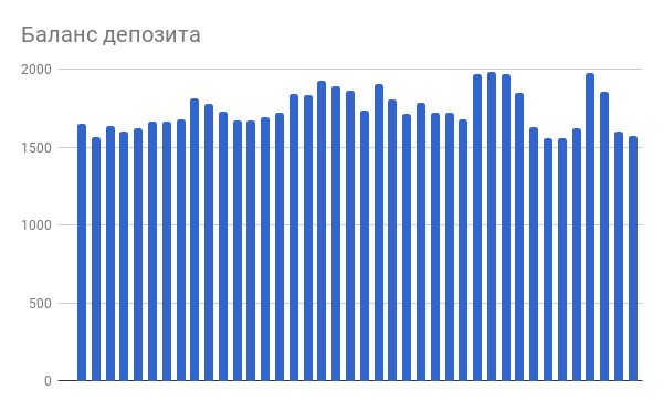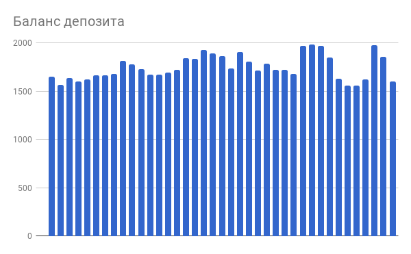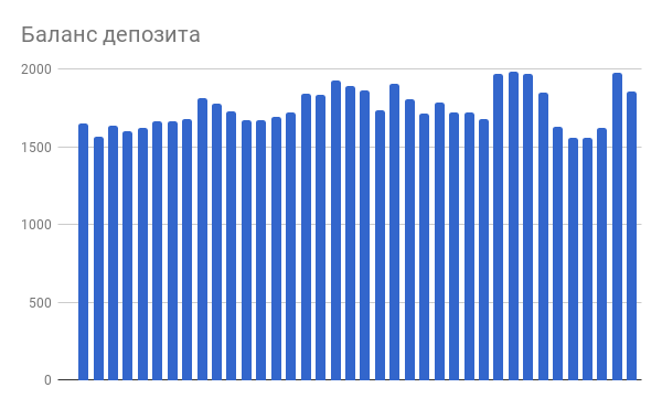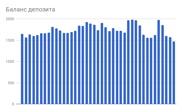 Кстати, а поясните, пожалуйста значения цифр на графике, чтобы можно было читать их правильно. Я вижу, что текущие убытки от портфеля составляют -971 доллар. А в колонках ниже количество денег в портфеле колеблется между 1500 и 2000 долларов. Т.е. от пиков убыток составил около 500 долларов. Это значит, что доливались в портфель? Еще интересен текущий результат портфеля в процентах. Если не трудно.