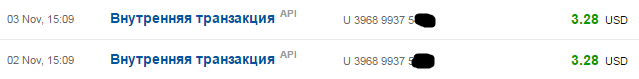 Внутренняя транзакция API