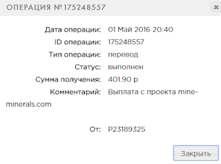 Комментарий: Выплата с проекта mine-minerals.com