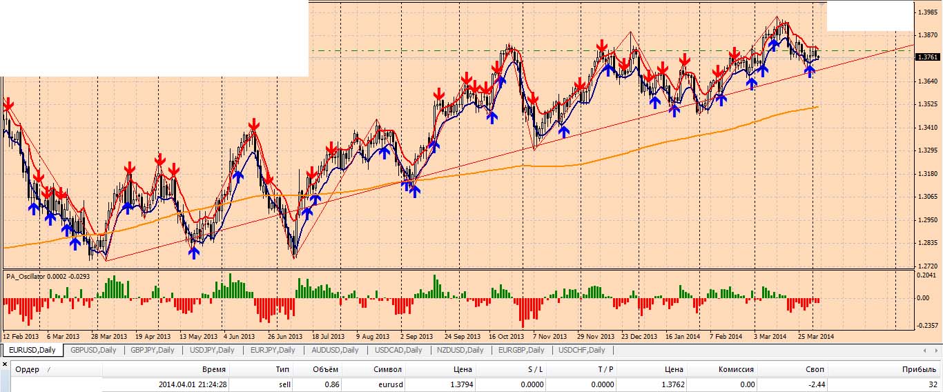 Константин вчера открыл сделку на продажу евры чётко по тренду от 1.3794.
